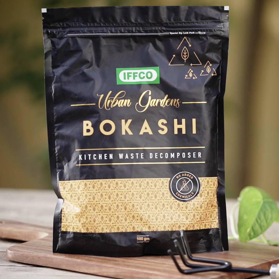 Bokashi is a special mixture of wheat bran, sawdust, and rice husk along with microbes that will help in decomposing your kitchen waste and make compost.